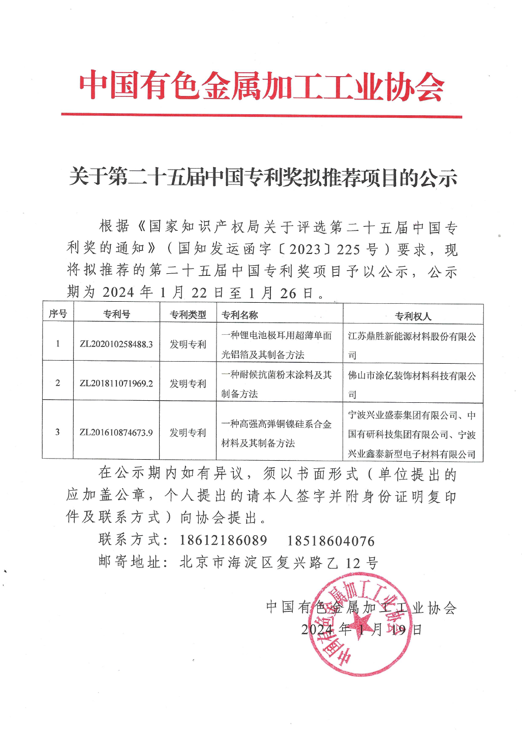 国家知识产权局关于评选第二十五届中国专利奖的通知