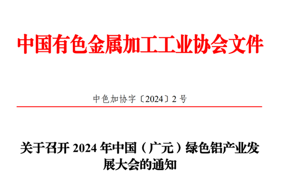 关于召开2024年中国(广元)绿色铝产业发展大会的通知