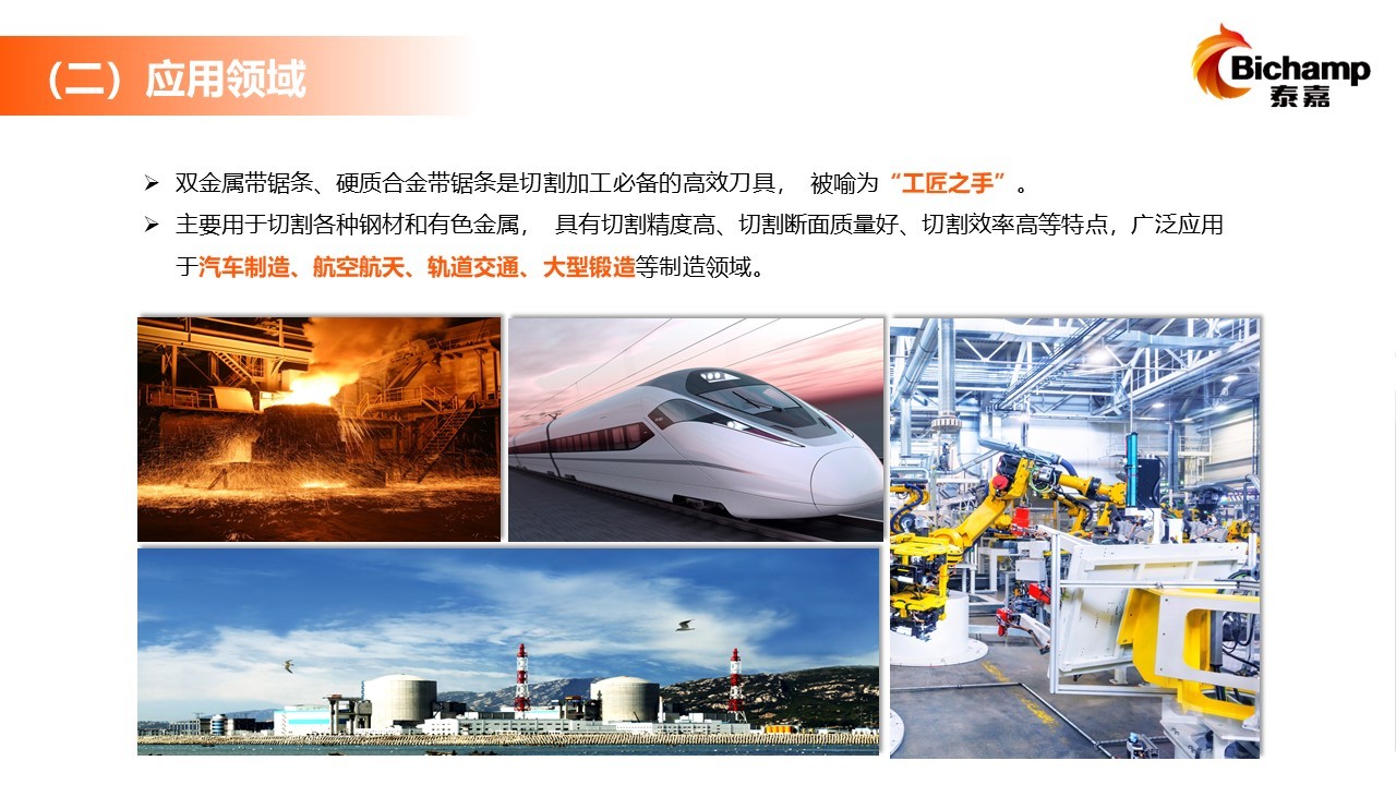 在锯切板块,公司致力于双金属带锯条和硬质合金带锯条产品的研发、生产与销售,以及锯切技术整体解决方案的提供,是工信部认定的制造业单项冠军示范企业,双金属带锯条国家标准、硬质合金带锯条行业标准起草单位。